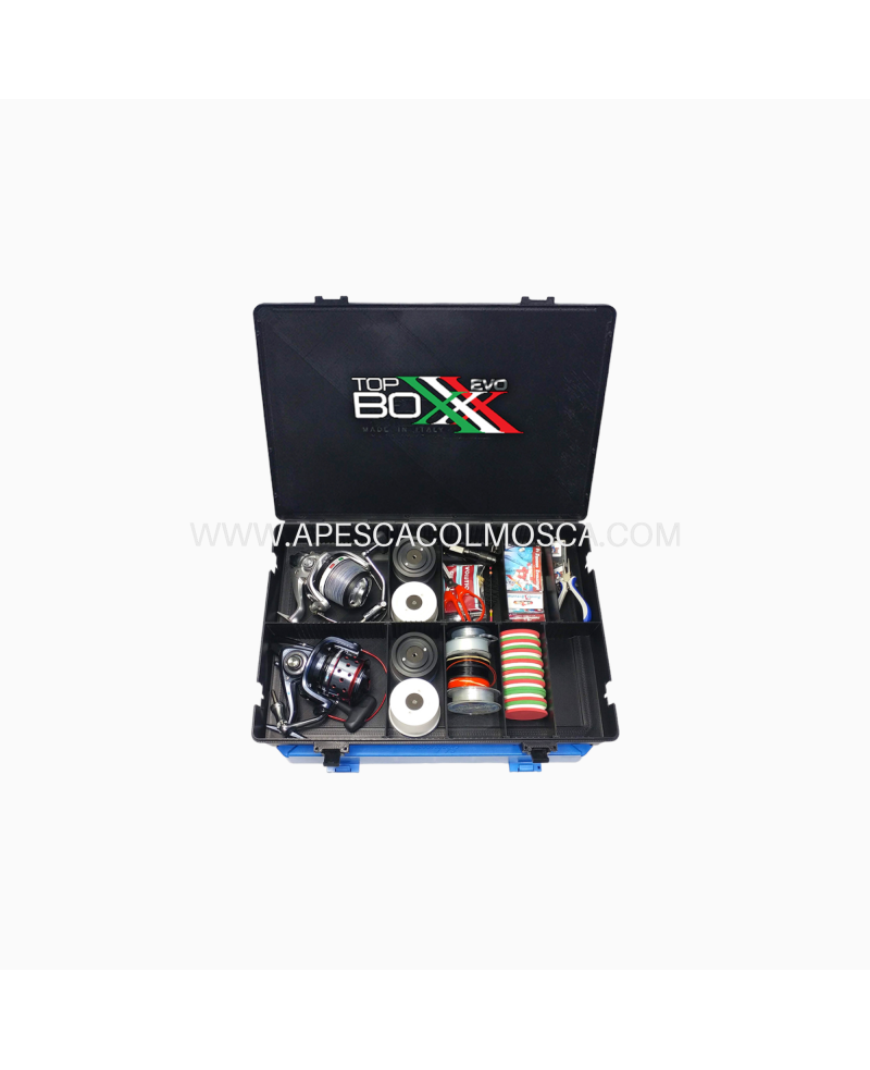 Il Top Boxxx Evo e' compatibile con i vassoi laterali mitchell o shakespeare ed è anche una valida valigetta da pesca quando si deve affrontare una battuta di pesca dove portare poche cose e mirate come la pesca dagli scogli, dalla barca, ottimo per i lanciatori su prato e per qualunque utilizzo.