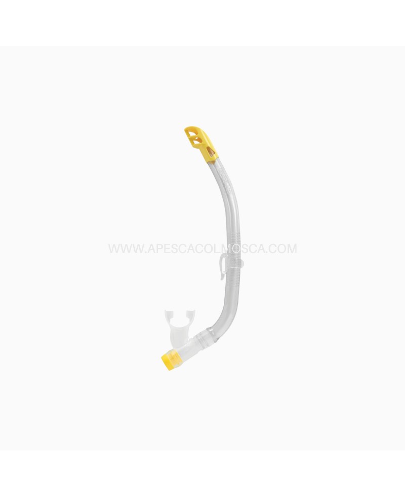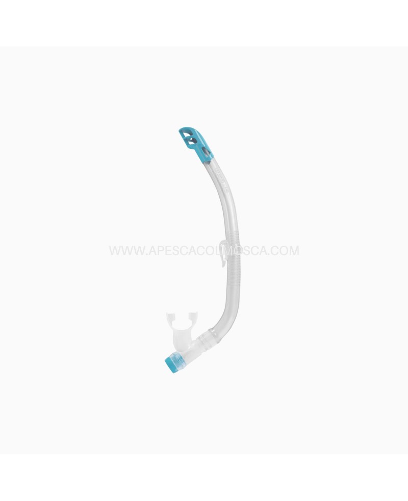 Tubo trasparente in materiale flessibile con clip per il fissaggio alla maschera, regolabile in altezza.