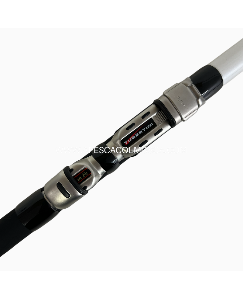Il marchio F1 identifica il top di gamma, della sezione mare nel catalogo Tubertini! La serie di canne F1 Telescopic si candida per essere di riferimento nell’ambito della pesca dalla barca. Le F1 Telescopic sono canne leggere e sottili con azioni studiate in collaborazione con i campioni della Lenza Emiliana in modo da offrire agli agonisti tutte le soluzioni tecniche possibili; per questo motivo le versioni Medium e Strong vengono proposte senza il consueto set di cime in modo che saranno i pescatori stessi a decidere il tipo di vette con le quali dotare le canne in funzione delle proprie esigenze di pesca. È infatti disponibile un ampio range di cime TGT-Ti (Tubertini Glass Tip-Titanio) di altissima qualità e azione diversa, dotate di anelli con ponte in titanio e sistema A.P. Flex (dettagli a pagina 83). Le canne montano anelli SiC con frame in titanio, porta mulinello Alps, un blocco per regolare la lunghezza e sono dotate di un pratico tappo posteriore da combattimento in gomma removibile.