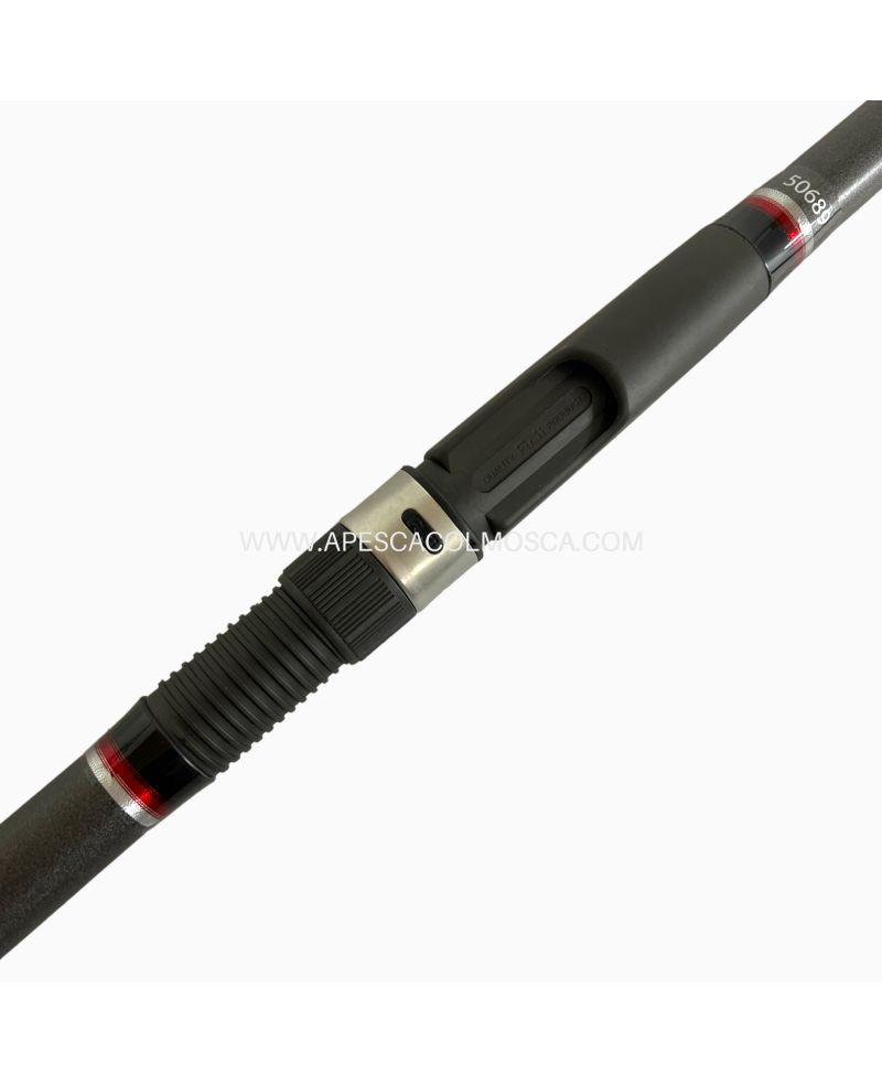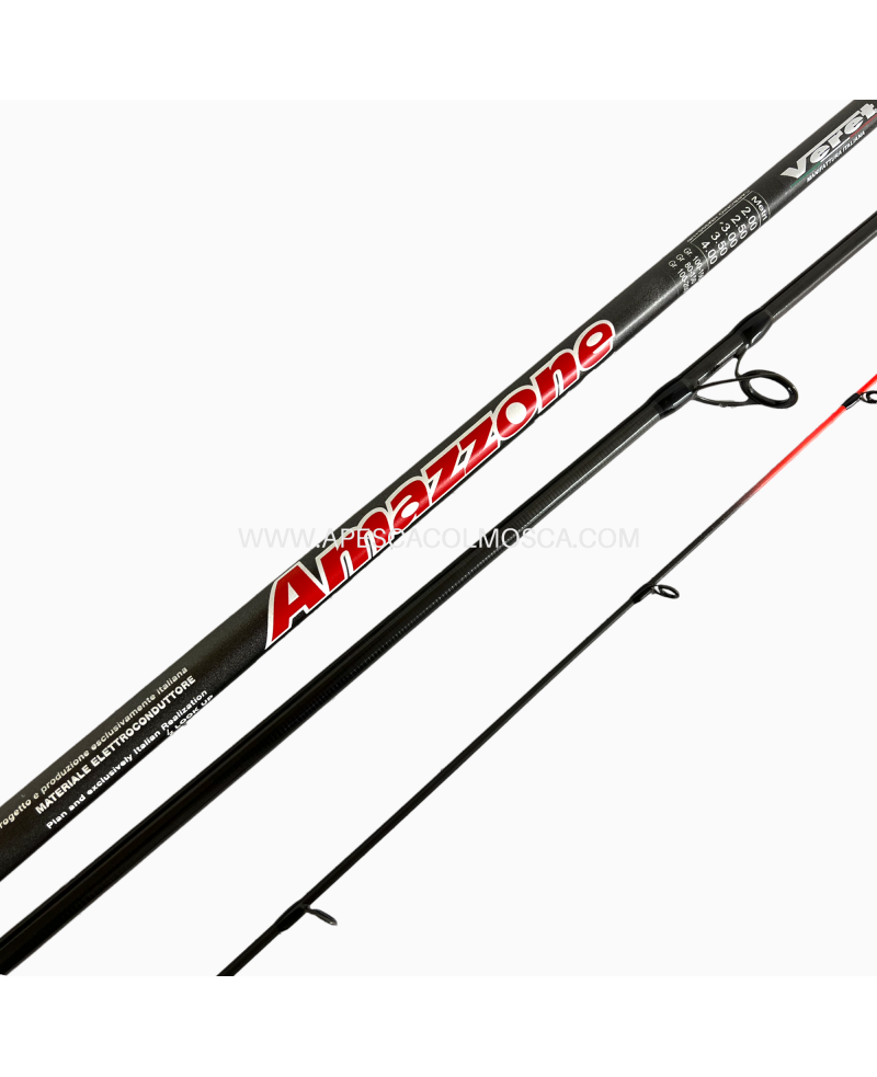 L’Amazzone è una canna da bolentino interamente ad innesti, costruita con materiali ad alta resistenza che garantiscono affidabilità all’attrezzo anche in condizioni di lavoro estremo. Realizzata in due o tre pezzi più cime intercambiabili. Il suo punto di forza è il portacima, che assieme alla cima, ha un ruolo predominante durante la cattura lasciando sempre una riserva di potenza nella parte bassa della struttura. In dotazione due cime ad innesto con azione differenziata in Solid Carbon.