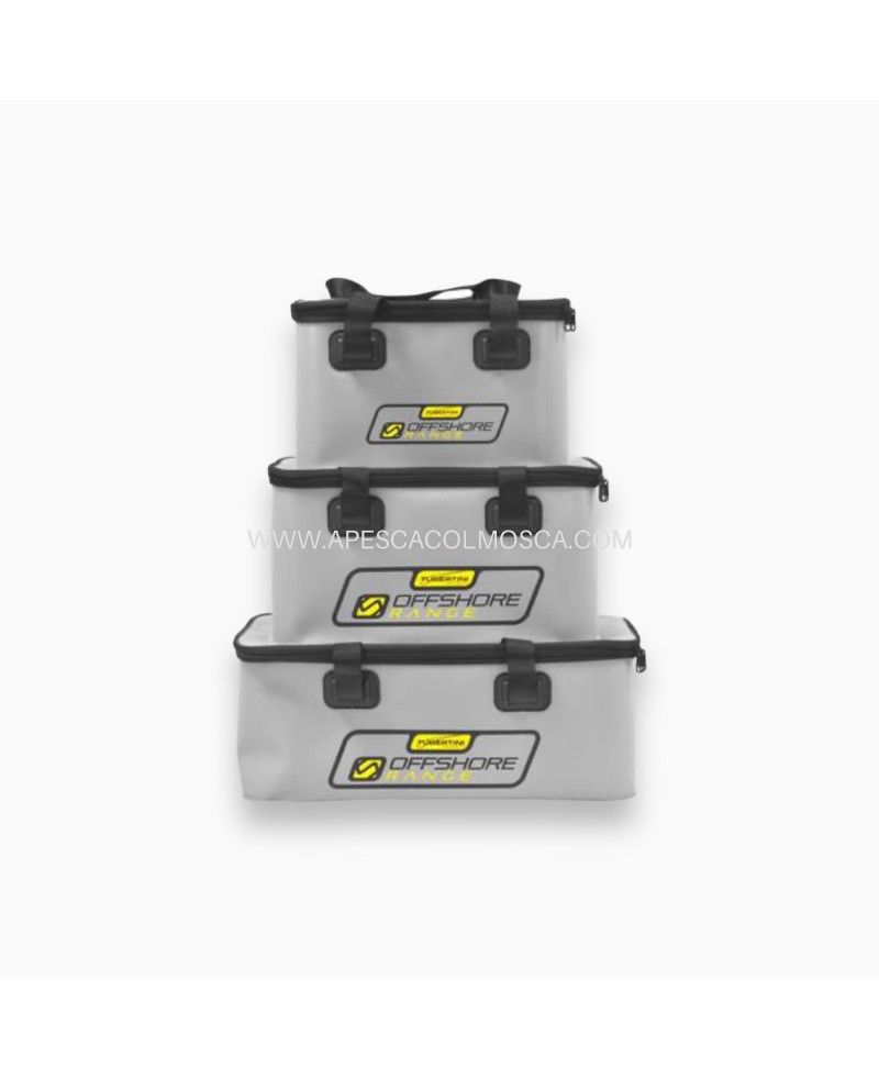 Serie di borse in materiale plastico, molto capienti, ideali per il trasporto di attrezzature ed anche per il trasporto del vivo.