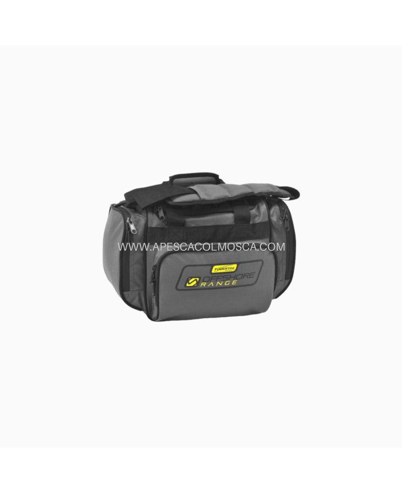 Borsone di medie dimensioni, ideale per contenere tutto il materiale da pesca necessario. Costruito in tessuto antistrappo molto resistente, monta cerniere di alta qualità, tracolla imbottita asportabile, manici rinforzati ed oltre al comparto principale è dotato di due tasche laterali e di una frontale, personalizzata con il logo stampato.