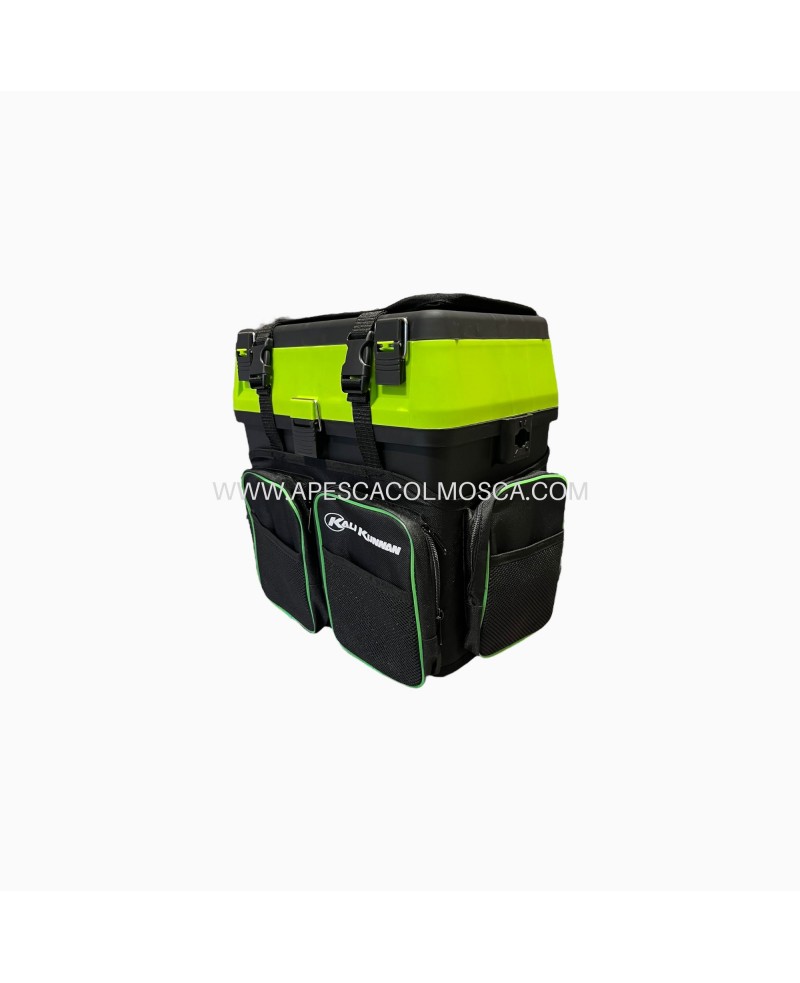 Eccellente cassone per trasportare il materiale da pesca in maniera ordinata. Nella parte superiore si trovano 4 cassette per accessori e alcune sezioni con divisori. Nella parte inferiore un ampio cassone per trasportare il materiale più voluminoso come mulinelli, borse con accessori, esche, etc.