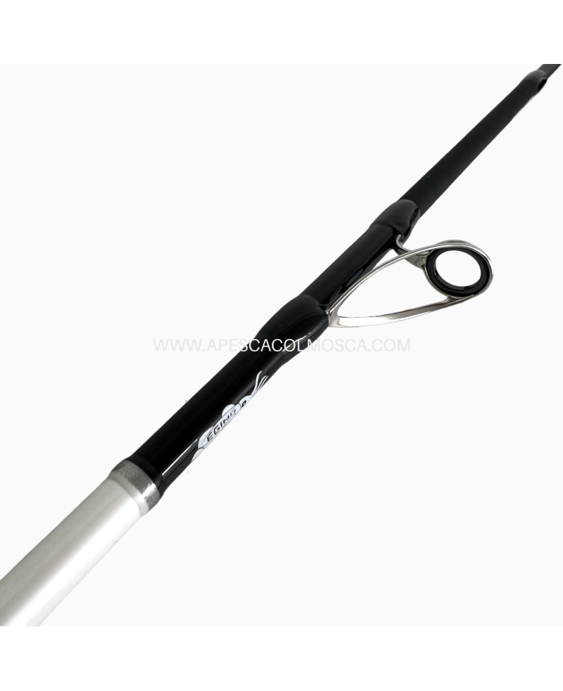 Canna in due sezioni con attacco a spigot pensata per la pesca alle seppie e calamari dalla riva. Le straordinarie doti di leggerezza e bilanciatura così come l'estrema sensibilità della vetta tubolare, consentono al pescatore di gestire gli artificiali con precisione ed il massimo controllo. Gli anelli in dotazione sono SiC di ottima qualità, il portamulinello e l'impugnatura di design esclusivo.