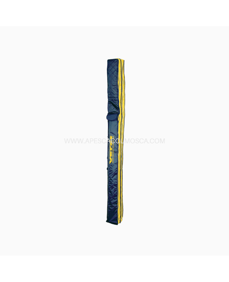 Portacanne doppio per Surf Ripartite o Long casting, imbottitura interna e velcri ferma canna, apertura a libro. Tracolle imbottite e tasche esterne porta picchetti.