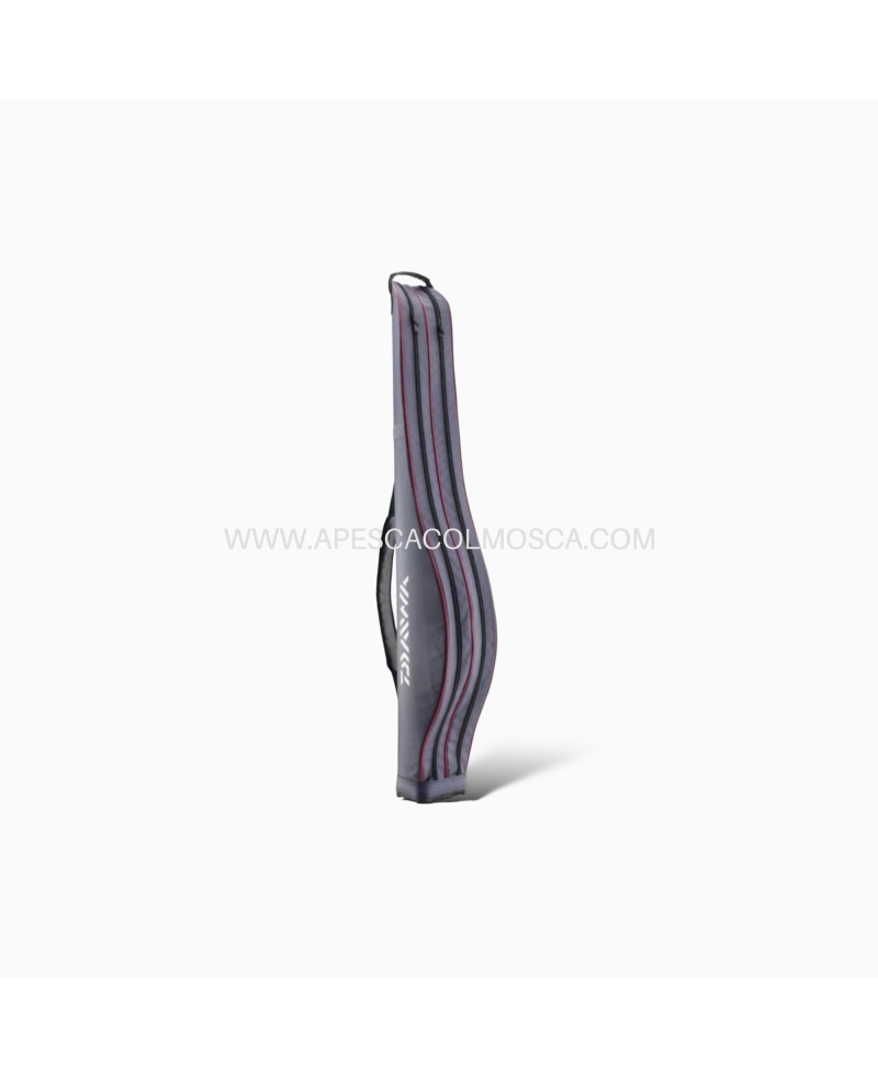 Fodero porta canne Bolognese con 2 tasche Daiwa, progettato per ospitare due canne completamente assemblate. Caratterizzato da una robusta copertura esterna in materiale poliestere, il fodero offre una protezione ottimale contro acqua e sporco. Il rivestimento in PVC garantisce una maggiore durabilità e resistenza agli agenti atmosferici. Dotato di una spaziosa tracolla regolabile, il fodero assicura un trasporto comodo e pratico anche durante spostamenti prolungati. Con una lunghezza di 165 cm, offre ampio spazio per le canne e accessori correlati, rendendolo un complemento ideale per gli amanti della pesca professionale o ricreativa.