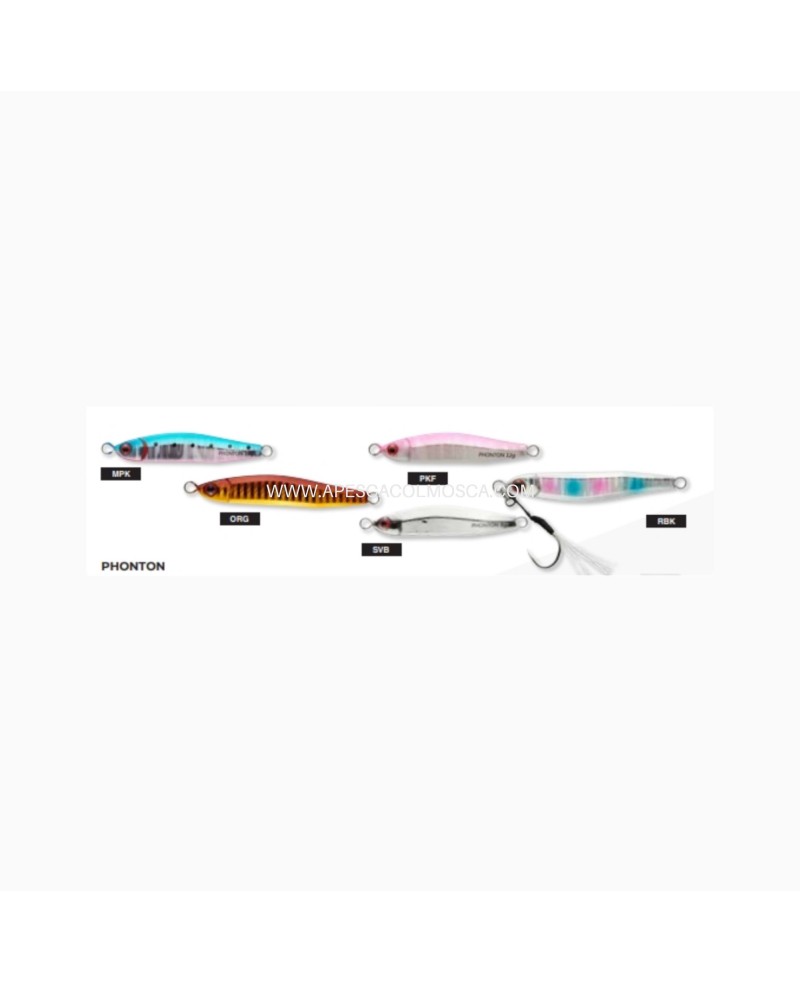 PHONTON è un jig per la pesca da riva con la sua forma allungata, l’aerodinamica perfetta per grossi lanci, e facile da impugnare, scivola molto bene in acqua.Possiamo utilizzarlo con l’attrezzatura da rockfishing, le versioni light, e con le nostre classiche attrezzatura da spinning, le versioni leggere. Più pesante, è ideale per la pesca di sugarelli, palamiti, sgombri, pesci pelagici in genere, di cui possiamo pescare su qualsiasi frangiflutti o affioramento roccioso.