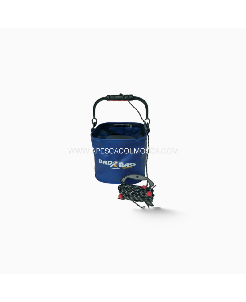 Bad Bass – Bucket con sagola è un secchio da pesca flessibile molto duttile. Si presenta come pratico e compatto, utilissimo quando vi è la necessità di recuperare l’acqua da una sponda poco agevole e particolarmente ripida.