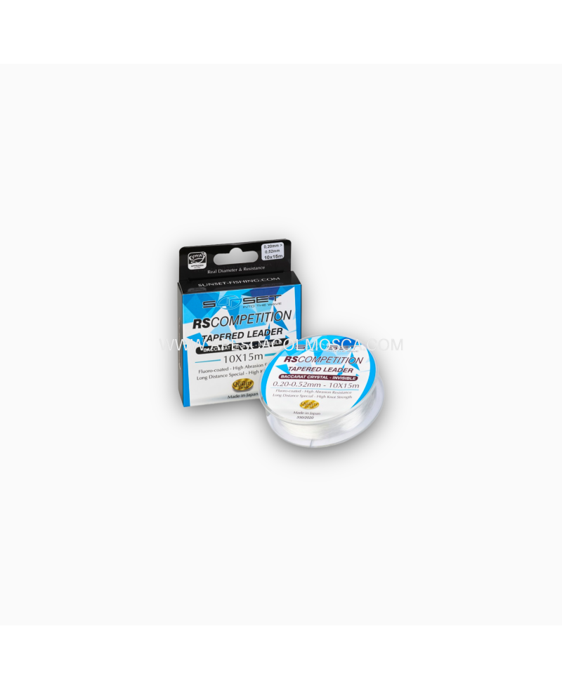 I Sunset Tapered Leader Rs Competition sono leader conici, dotati di un rivestimento in fluorocarbonio per un’elevata resistenza all’abrasione. I piombi Tapered offrono un’alta resistenza ai nodi e all’abrasione e scorrono facilmente attraverso gli anelli guida. Resistente ai raggi UV e molto forte. Grazie ai diametri affusolati, i leader forniscono migliori prestazioni di lancio. Le lenze sono virtualmente invisibili sott’acqua grazie al rivestimento in fluorocarbonio. Fabbricati con materiali di alta qualità e offrono una lunga durata.