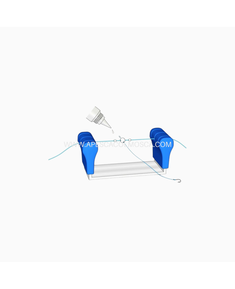 Supporto per sostenere il filo (nylon o trecciato) durante le operazioni di montaggio del terminale. Composto da una basetta in alluminio che lo rende stabile e da inserti in gomma blocca-filo.