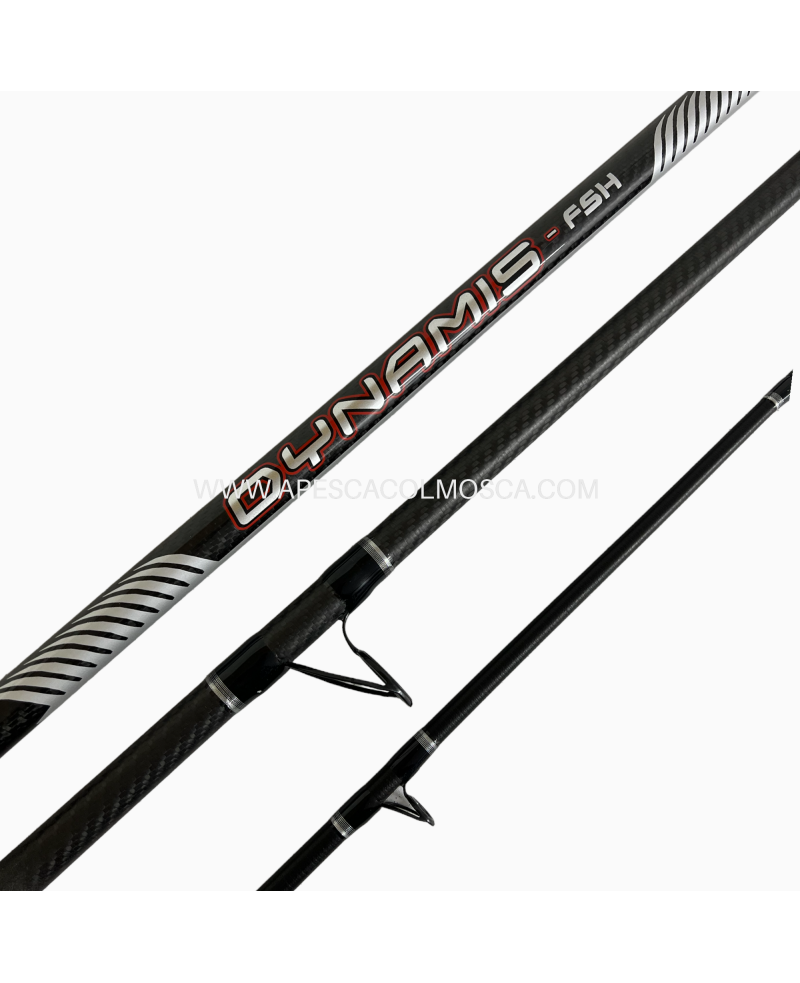 La FSH quindi è decisamente più versatile e rivolta alla pesca anche grazie alla maggior sensibilità, pur conservando quasi inalterate performance di distanza. Entrambe i modelli sono realizzati in Carbonio alto modulo ed altri materiali che si scambiano anche visibilmente tra loro, in tre sezioni leggermente asimmetriche, con lunghezze determinate da scelte ben precise che portano ad esprimere al meglio tutta la loro notevole potenza. Il modello OTG ha una lunghezza di 4,38 m totali mentre la FSH è lunga 4,50 m Innesti stabili e sicuri con l'esclusivo sistema Italcanna a conicità inversa a garanzia di innumerevoli cambi. Portamulinello Fuji, impugnatura in neoprene terminale e verniciatura soft-touch per migliorare la presa sulla mano sinistra, mentre è stata usata una vernice antigrip sugli innesti per facilitare lo smontaggio degli elementi anche a mani bagnate. Azione 0.91 per il modello OTG ed azione 0.75 per la versione FSH.
