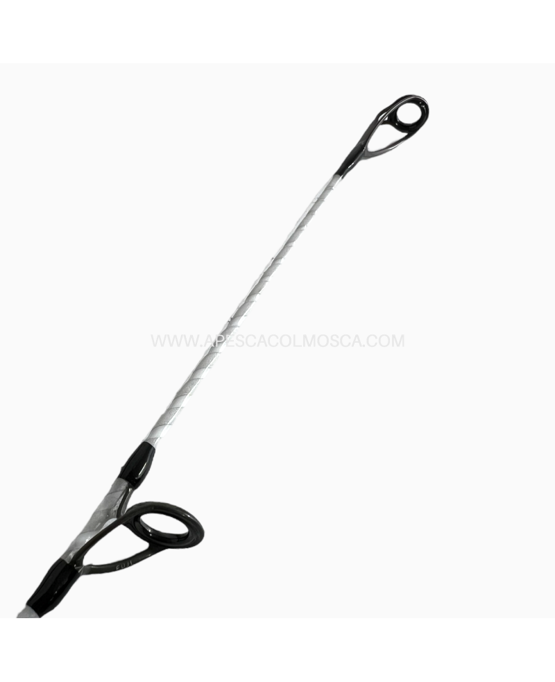 Il montaggio standard della E-VENTO S3 prevede il tappo Fuji BRC, guaina di impugnatura, porta mulinello Fuji DNPS e anelli Fuji BCKWAG. Le tre grammature sono facilmente distinguibili dai colori delle legature: verde per la 125gr, giallo per la 150gr e rosso per la 175gr.
