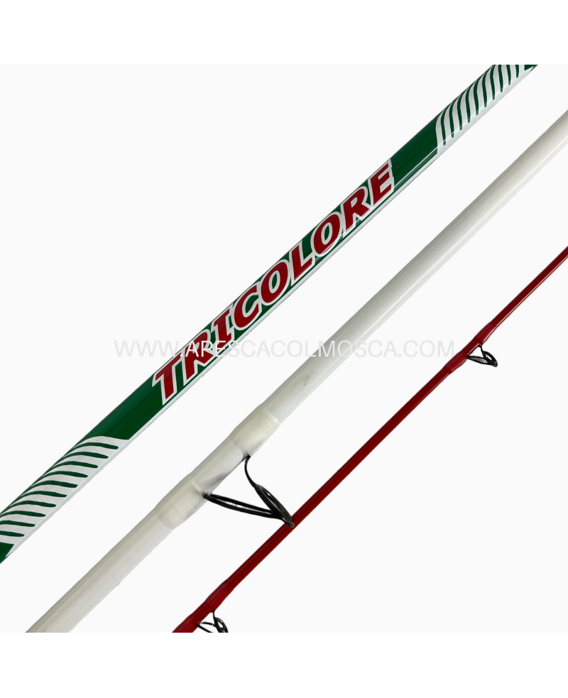 La Tricolore è una canna esteticamente molto appariscente e richiama al 100x100 la nostra nazione. La 180 gr richiede una grammatura che va da 100 a 150 gr di piombo. Adatta un pò a tutti i pescatori,anche se per sfruttare a pieno le caratteristiche dell'attrezzo un lancio un pochino piu tecnico ed angolato consentirebbe di pescare a distanze sicuramente piu elevate.