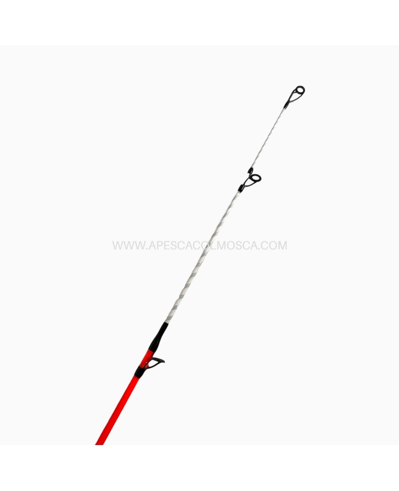 Già al primo impatto si rimane colpiti dal suo look accattivante e dalla sua leggerezza. Le particolari azioni sono dovute alle cime riportate in Solid Carbon che si uniscono, con una perfetta continuità, alla struttura sottostante dando un’azione che nella pesca risulta molto efficace.