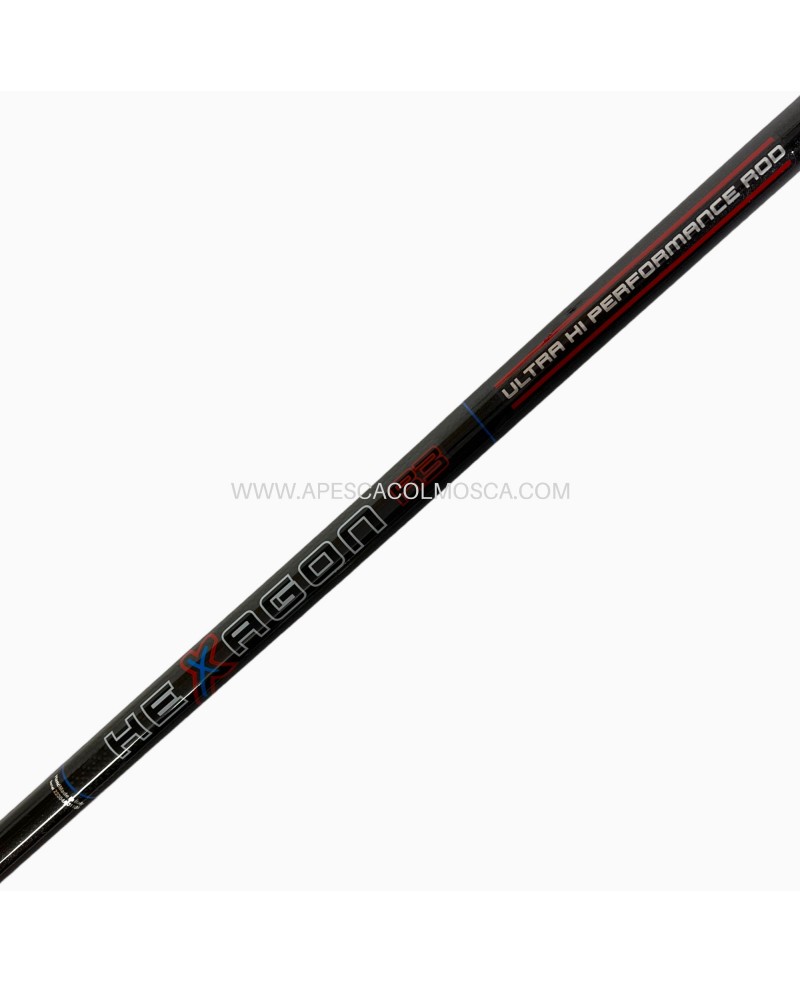 ITALCANNA HEXAGON R3 è una serie di canne che prende il posto della leggendaria HEXAGON, che va in pensione dopo 20 anni di successi. Grazie infatti alle più recenti innovazioni nel campo dei materiali compositi i tecnici ITALCANNA sono stati in grado di superare il precedente CarboTitanium (brevetto Italcanna 13/12/2002) in ragione di un miscela tra carbonio IM/HM in resina epossidica con dispersione di cariche nanocoposite, ed un calcio realizzato con l'esclusivo carbonio “StarCross”. Questa particolare costruzione ha portato ad un prodotto dotato di elevata affidabilità, pur conservando la caratteristica del modello precedente di accumulare una energia quasi doppia rispetto ad una tradizionale canna in alto modulo puro, e soprattutto in grado di restituire quasi interamente questa energia al piombo. La HEXAGON 100 si distingue per il rapido caricamento del piombo anche con poca escursione, (potrebbe quindi essere idonea anche per attacco basso), ideale per pesche leggere alle mormore ed orate, sia da spiaggia che da scogliera. La HEXAGON 150 è sensibile, leggera, si carica facilmente in progressione senza strappare l’esca, e raggiunge distanze notevoli anche con lanci non forzati. La HEXAGON 200 si può definire come l'evoluzione della EVO 170, potente e sicura, gestisce al meglio le zavorre pesanti, ottima con fili sottili. Tutti i modelli presentano un'ottimo bilanciamento, scorrevoli a tubetto che non girano, salvanelli in plastica, ed i più recenti anelli anti parrucca Fuji in SiC, a pietra incassata nella struttura di metallo. La loro forma particolare impedisce al filo di rimanere impigliato durante il lancio. ITALCANNA HEXAGON R3 rappresenta oggi il top della produzione nel settore telescopico per il surfcasting.