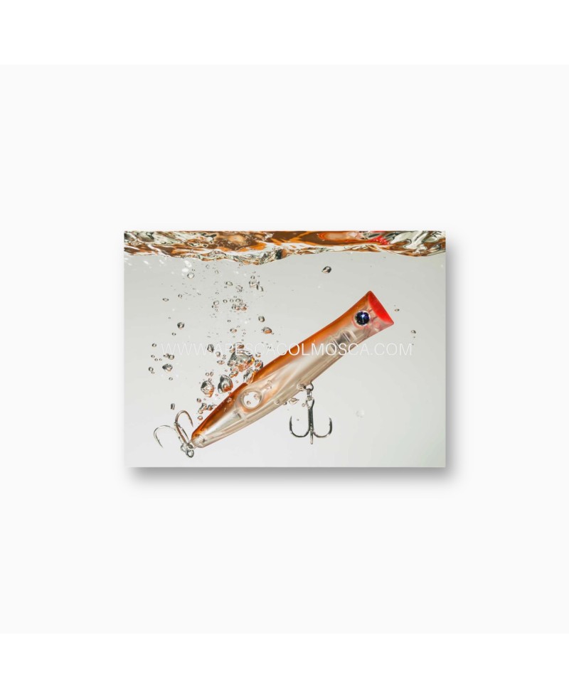 La pressione extra che si crea in questo modo nella parte posteriore del modello si combina con la normale pressione dell’acqua, presente durante il nuoto nella parte anteriore di tutti i popper, e crea un maggiore scodinzolio dell’artificiale, un tubo di bollicine decisamente superiore rispetto a quello formato dai popper convenzionali, un freno posteriore che rallenta l’artificiale quando il pescatore interrompe il recupero e, in generale, permette un maggior controllo dell’esca.