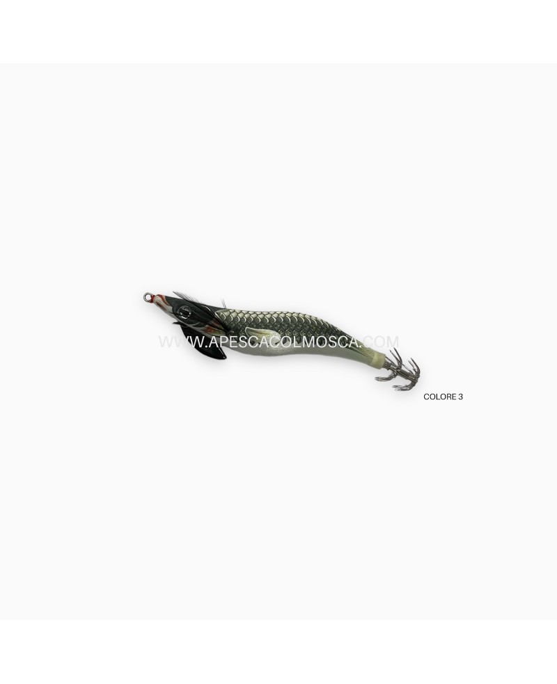 Artificiale Kabo Squid Refish Killer Squid realizzato con una cura maniacale per i dettagli. Corpo affusolato con livree brillanti con una riproduzione fedele del pesce foraggio che caratterizzano questo egi perfetto per incuriosire i cefalopodi. Rivestimento in seta brillante con UV Printing Technology, occhio tridimensionale, progettato appositamente per rendere questa totanara più realistica possibile.