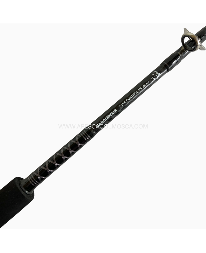 Le canne SUNSET BAROUDEUR TUNA CONTROL hanno un fusto in composito single strand, un gimbal in alluminio + pomello anti shock, un tallone in ABS PacBay, un'impugnatura triangolare in schiuma EVA nera, un portamulinello tubolare in alluminio con doppi anelli di bloccaggio, anelli rinforzati Seaguide XR ligati e nylon guaina.