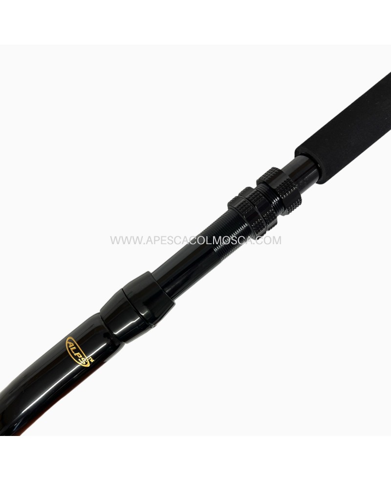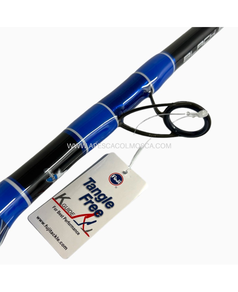 Il progetto si sviluppa su mandrini conici ripartendo carbonio pre preg HM e HS ingabbiati in fibre unidirezionali di vetro, per creare un’azione progressiva (in gergo definita moderate/fast) che aiuta molto l’angler a gestire, soprattutto inizialmente, le potenti fughe dei predatori marini. Tutto questo grazie alla prima parte della canna che risulta pastosa, mentre poi progressivamente il blank incomincia ad esercitare una forza di rientro molto importante che permette di gestire comodamente il combattimento in tempi molto brevi.