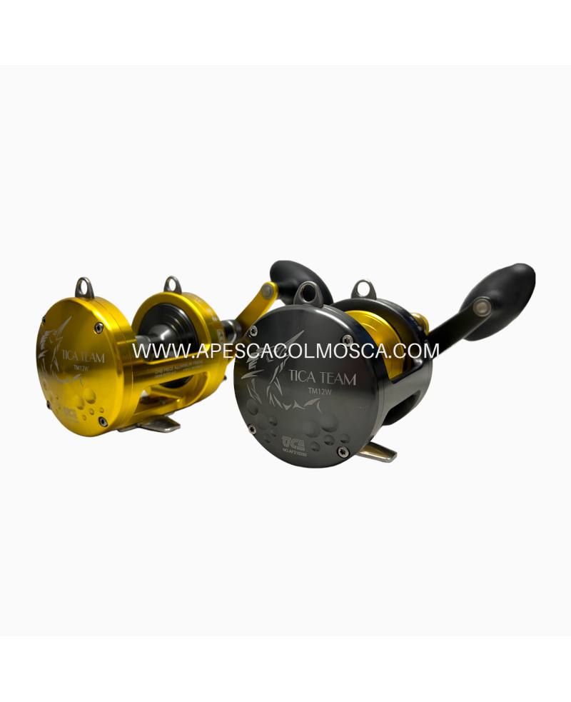 Il mulinello TICA TEAM nasce dall’evoluzione di un best seller tra i mulinelli da traina Tica. Il corpo e la bobina sono realizzati in monoblocco di alluminio tornito, e trattato con uno speciale trattamento anticorrosione. Tutta la parte meccanica, gli ingranaggi, e il pignone, sono in acciaio inox marino, anticorrosione. É dotato di 6 cuscinetti in acciaio schermato anticorrosione, oltre a due maxi cuscinetti antiritorno, posizionati su entrambi i lati della bobina. La frizione è realizzata con dischi in carbonio, ed il selettore ha una regolazione micrometrica. Disponibile in misure dal 12 al 50lb, è adatto a qualsiasi tecnica di pesca dalla barca, dalla traina col vivo, alla traina in altura, e al drifting al tonno.