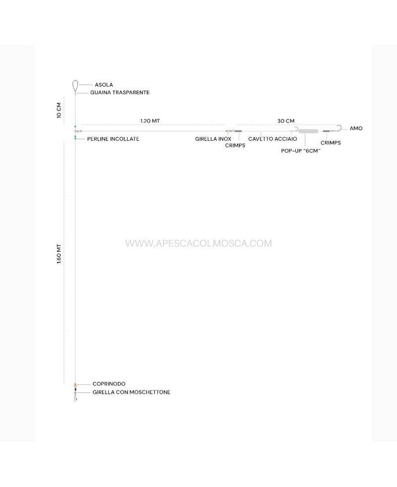 I travi sono disponibili in due versioni : Uno con amo singolo della misura 5/0 , l'altro con amo doppio con amo scorrevole del 3/0 mentre l'amo ferrante è del 5/0.