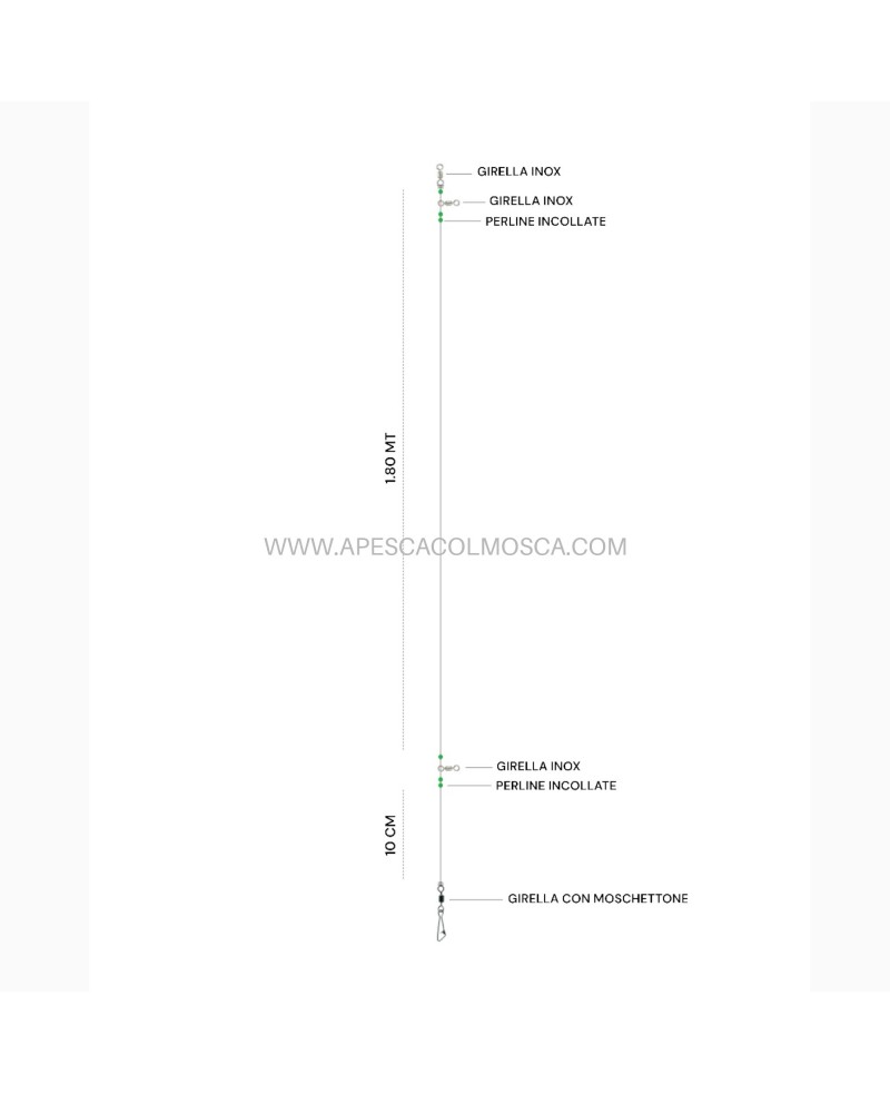 Trave per Surfcasting a due ami : trave del 50 col legature alla cassa e al moschettone eseguite con cocó girelle del 22 con microperline doppie verso il basso tutto interamente incollato sensa nodi che indeboliscano il carico di rottura del mono filo . Possibilità di montarci bracciolo fino a 1,20 mt trave lungo 1,80 mt, con possibilità di personalizzazione in base alle esigenze.