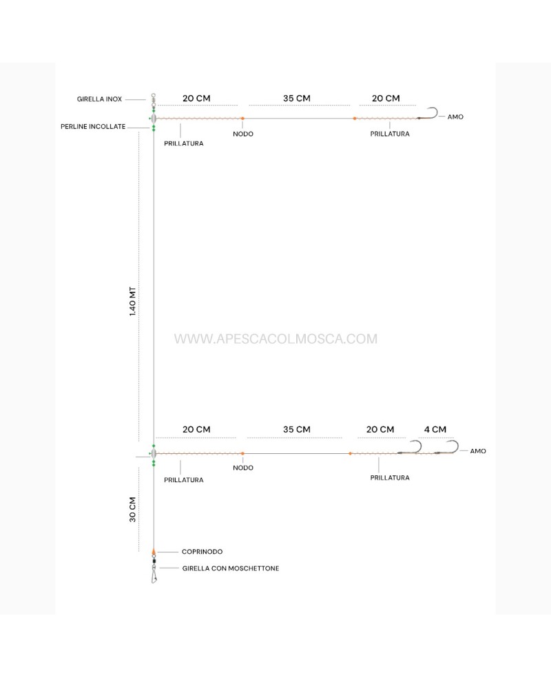 trave incollato con tecnosfera, a doppio terminale A Pesca Col Mosca.