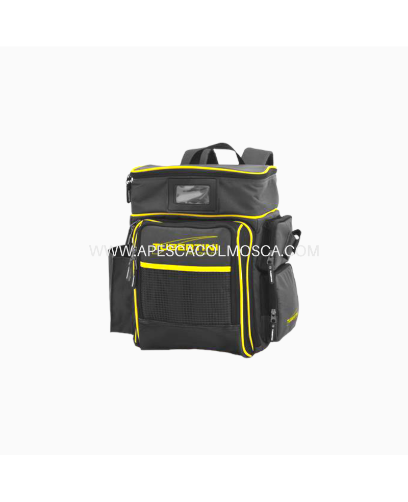 Zaino estremamente versatile e dal look accattivante, ideale per la pesca itinerante a spinning o per il trasporto delle cassette e degli accessori indispensabili per pescare. Molto pratico e capiente grazie alla tasca superiore e alle tre laterali, di cui due dotate di cerniera e a quella frontale, personalizzata con il logo Tubertini, dotata anche di ulteriore taschino in rete gommata. Il vano principale, accessibile dal davanti è ideale per contenere anche capi di abbigliamento.